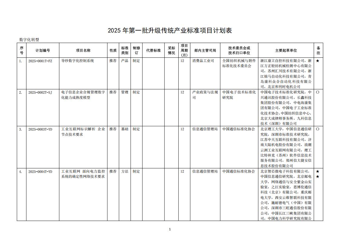 工業(yè)和信息化部辦公廳關(guān)于印發(fā)2025年第一批行業(yè)標(biāo)準(zhǔn)制修訂計(jì)劃的通知